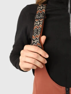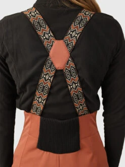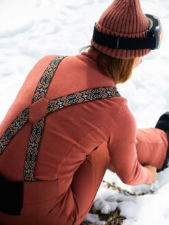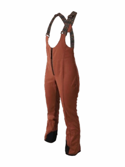 The Avalanche bib pants are made of PFC-free softshell material and have many useful features: A beautiful design in a skinny fit. The material is super elastic, breathable, water-repellent, and wind-repellent. At the back, the pants have a smocked waist, so that they always fit perfectly. The cool suspenders are adjustable, and the bottom of the legs are reinforced for extra abrasion resistance.
