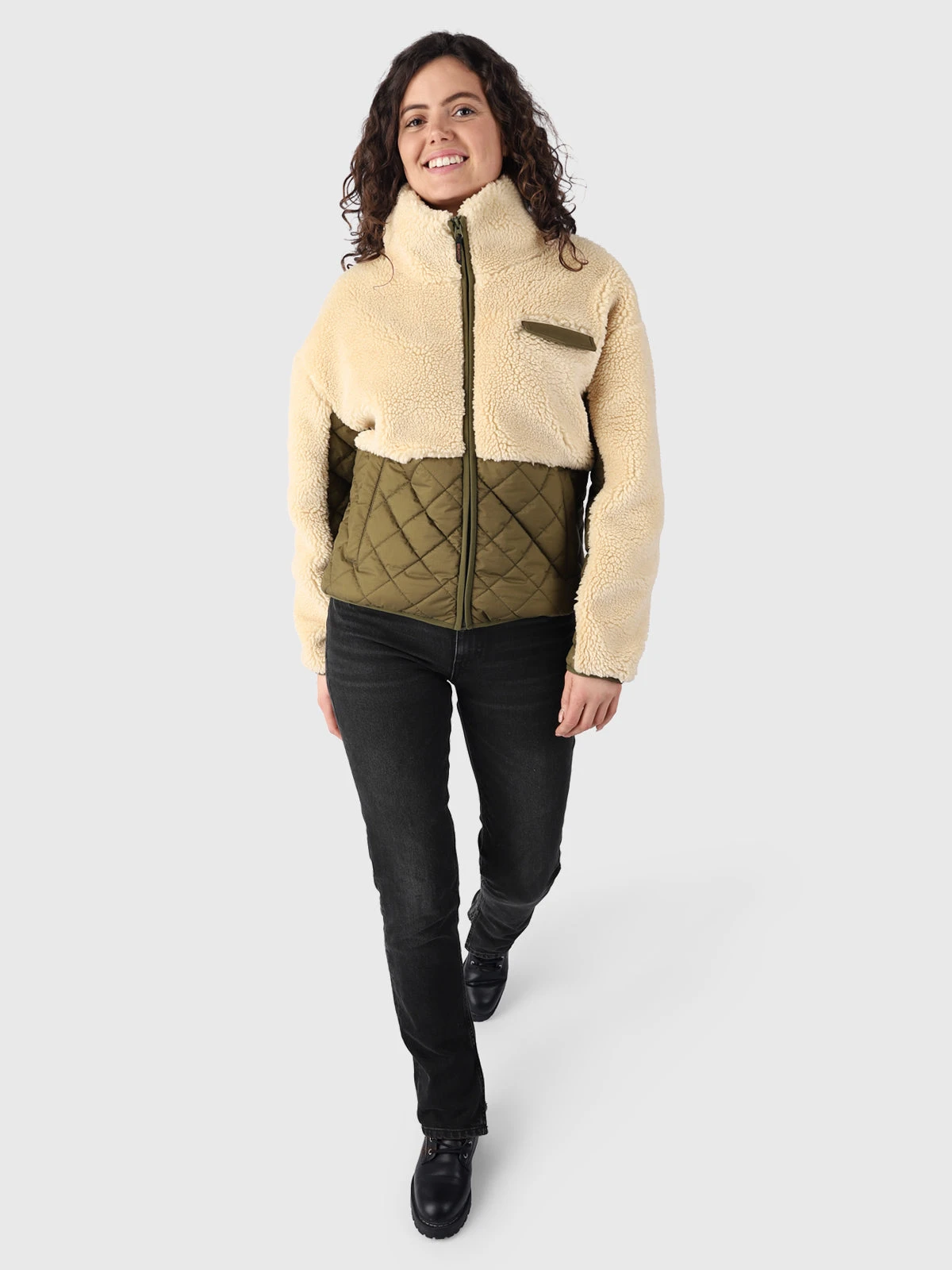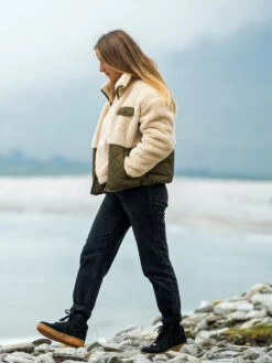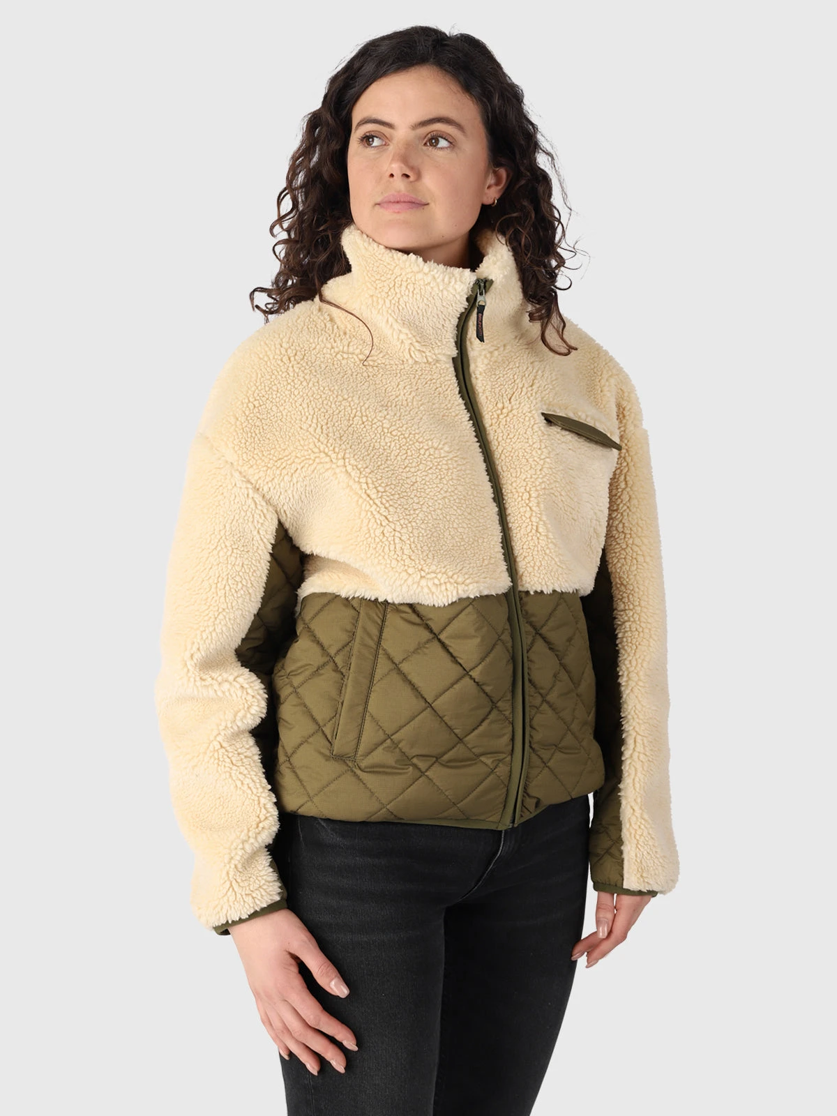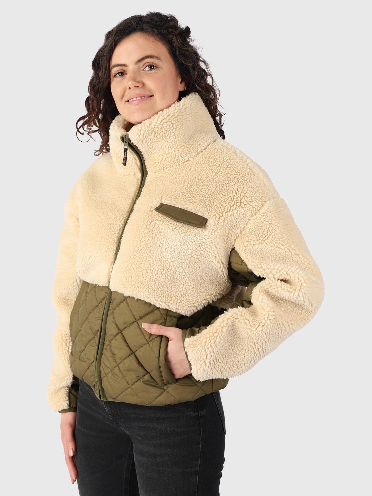 The Becca women’s jacket is a perfect combination of style and comfort! The top is made of soft teddy material, while the bottom is stylishly quilted. The diagonal quilted seams give the jacket a cool yet trendy look. Whether you’re taking a walk around town or exploring nature, this cozy jacket with a loose fit is your ideal companion.
