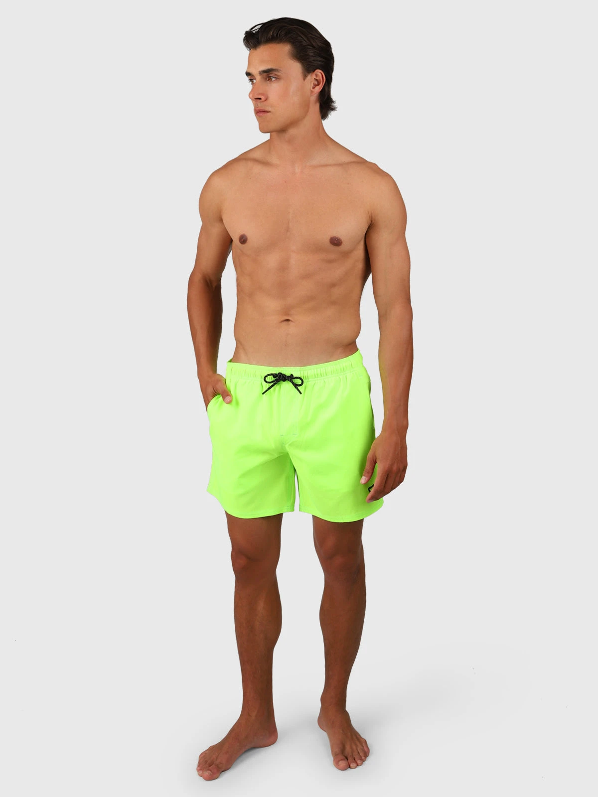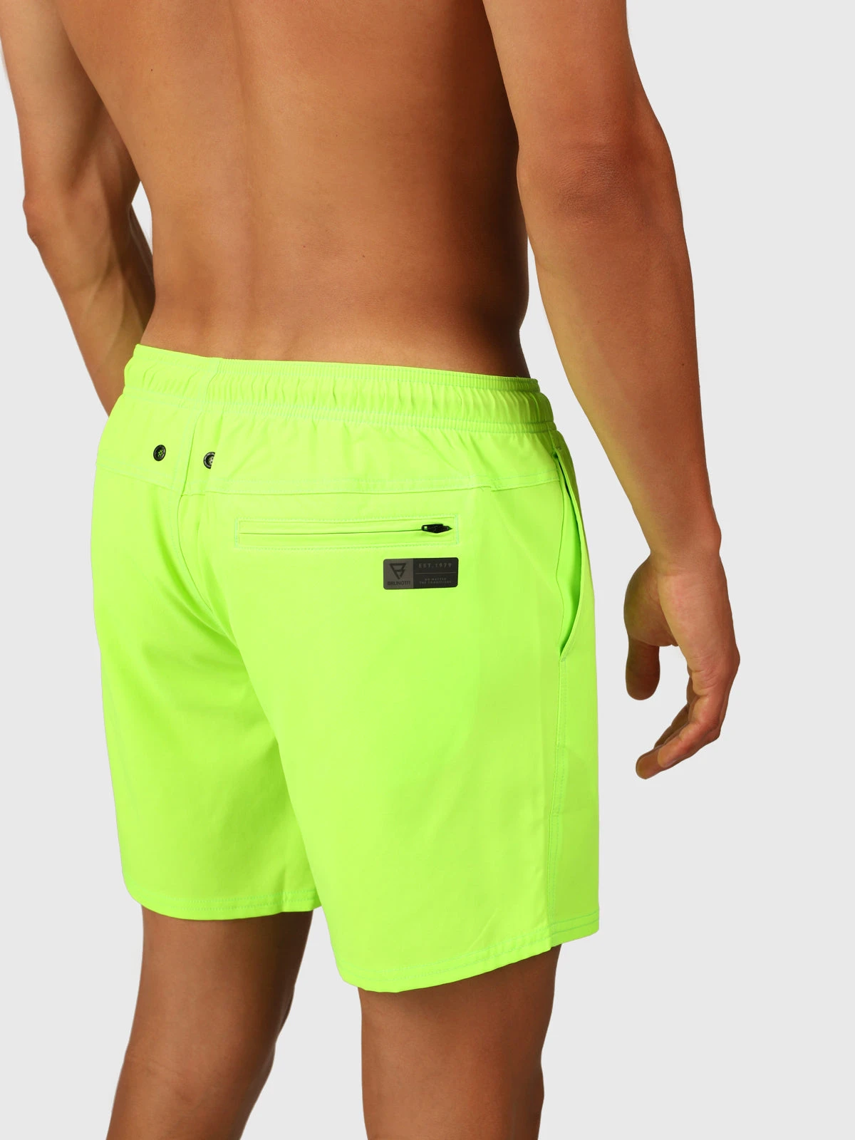 Discover ultimate comfort and style with these men’s swim shorts, crafted from high quality recycled fabric enriched with elastane. Choose from a wide range of vibrant colors to highlight your personal style. These quick-drying swim shorts feature an elastic waistband with an elegant drawstring for a perfect fit. With mesh inner shorts and two convenient mesh side pockets, the Bru-conic shorts offer not only practical convenience but also a sophisticated look. Discover the convenient zipper pocket on the back, perfect for keeping small essentials safe. Experience unparalleled comfort thanks to the 4-way-stretch material of these must-have swim shorts. Go for quality, style and durability with the Bru-conic swim shorts.