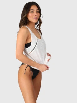 The Dilja Top combines a casual, textured look with elegant detailing. Made from soft slub jersey fabric, it offers a lightweight and breathable feel, perfect for warm days. The ladder trim detailing adds a chic, feminine touch, elevating its simple design. Whether paired with shorts for a laid-back vibe or layered with a skirt for a polished look, the Dilja Top is a versatile piece that blends comfort and style effortlessly.