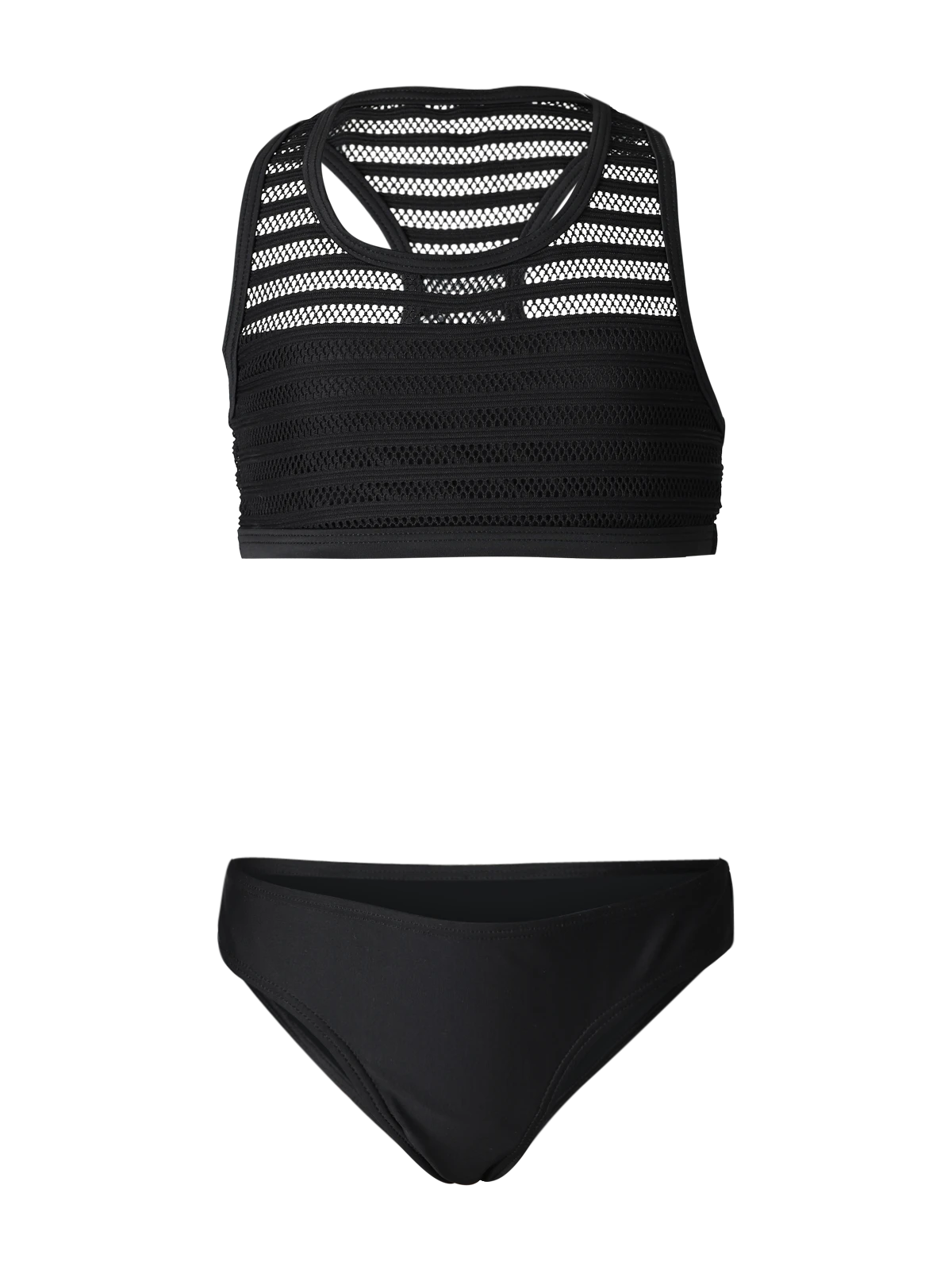 Bikini for girls with a sports top, made of fine mesh material.
