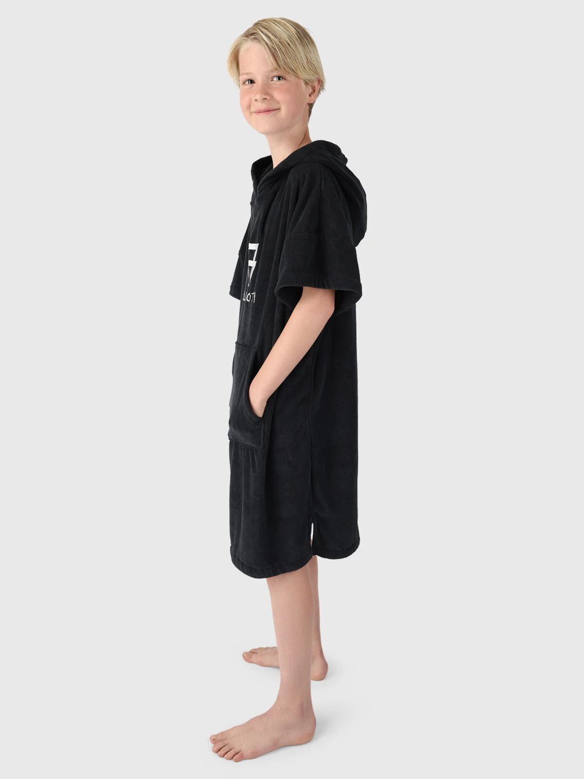 The length of the kids poncho is 85 cm, measured from the highest point at the shoulder (towards the neck).